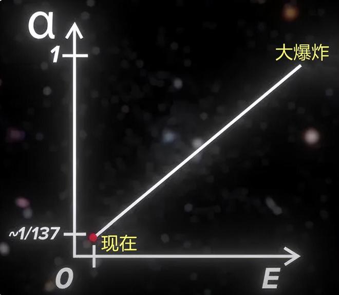 实际上,精细结构常数具有现在这个值,并不是一开始就是这样的。它随着相互作用能量的变化而变化。能量越高,其值越大。在宇宙大爆炸瞬间的强大能量中,电磁场的耦合常数(当时电磁力与其他力结合在一起,尚未分离)接近于1,但随着能量的降低和力的分离,温度迅速下降,它也随之很快降低到较低的值。直到今天,它处于能量尺度的底部,已经降至1/137.035999206,但并没有降到零,而是保持在这个值。